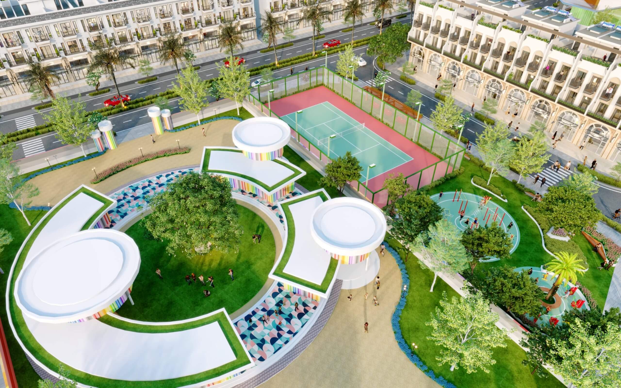 Mật độ xây dựng toàn dự án chỉ chiếm 39%, diện tích đất còn lại để xây dựng các tiện ích phục vụ cư dân sinh sống tại đây như công viên cây xanh, hồ bơi ngoài trời, khu vui chơi trẻ em, khu thương mại King Hill Mall …